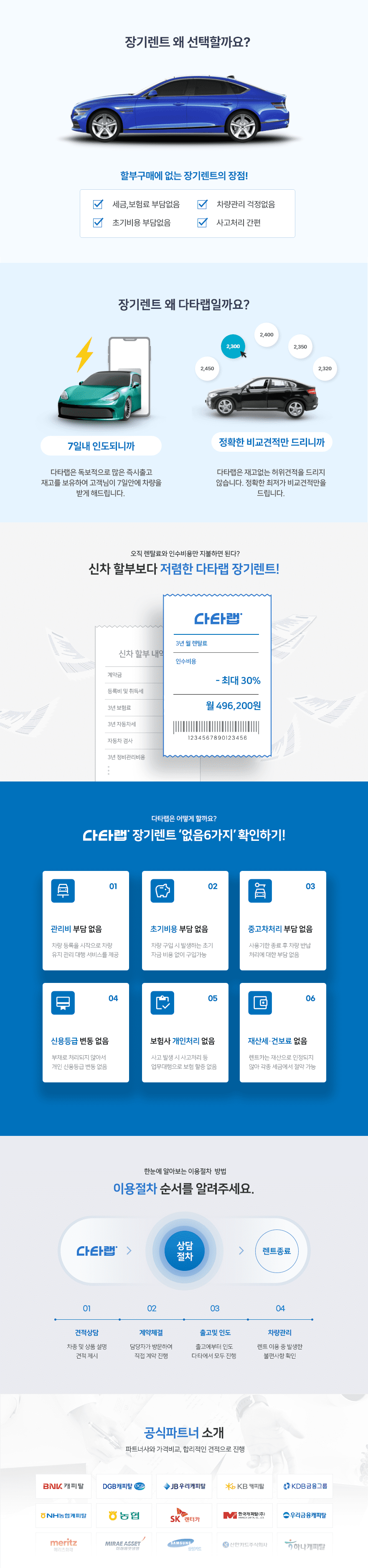 차량 인도가 매우 빠르네요!차량 계약 후 일주일 안으로 받았습니다!앞으로도 렌트 이용 할 일 있으면 다타랩으로 문의 드리겠습니다.감사합니다!